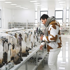 但“世界水晶之都”早已走上了转型道路。在矿石资源保护性开发的生态红线约束下,当地已不再开采水晶。东海人走出国门,从世界各地采购水晶原石,运回东海县集中加工和创意研发。