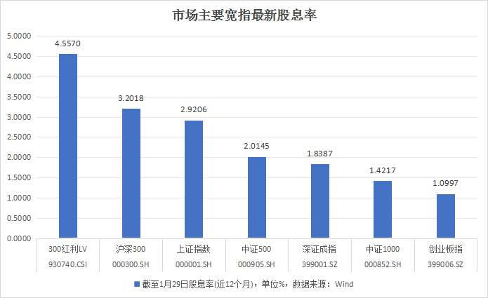 沪深300红利低波动指数股息率相对其他主流宽基指数优势明显。