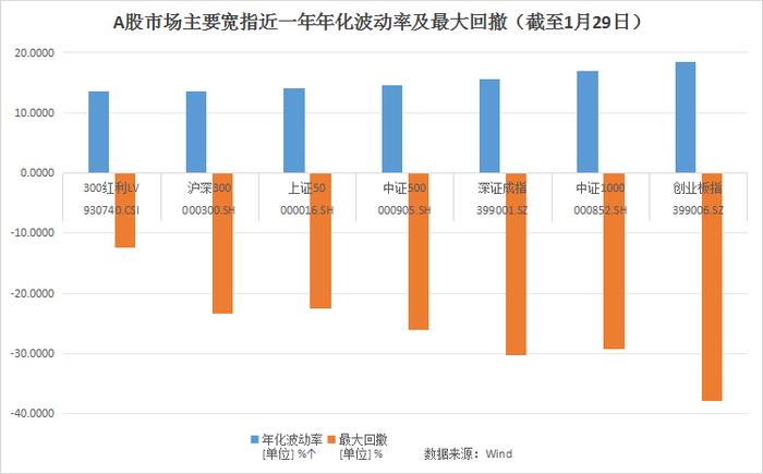 Wind数据显示,进入2024年以来,截至1月29日收盘,沪深300红利低波动上涨近5%,而三大指数、沪深300、中证500等纷纷下跌。