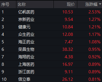 A股方面,医药板块早盘同样一度出现反弹。相关指数中,中证创新药产业指数(931152)盘中涨近1%,成分股涨多跌少。截至发稿,亿帆医药涨超2%,京新药业、健康元、众生药业、海正药业涨逾1%,荣昌生物、海翔药业、上海医药、浙江医药、信立泰等跟涨。