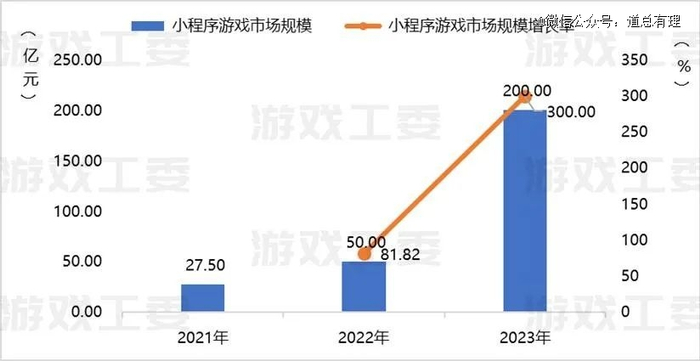 数据更为直观。《2022年中国游戏产业报告》显示,2022年中国休闲移动游戏收入344.38亿元,同比下降0.62%,是受游戏行业整体行情影响较小的游戏类别;而在《2023年中国游戏产业报告》中,国内小程序游戏市场收入200亿元,同比增长300%,是增长最快的游戏类别。