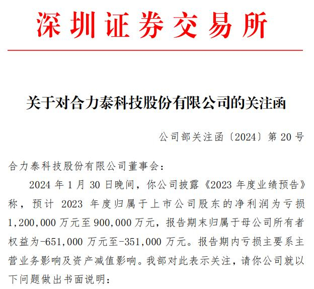 对于这份巨亏的年报预告,深交所也火速下发关注函。深交所要求合力泰“结合公司所处行业市场供需情况、公司主营产品售价及成本波动情况、同行业可比公司情况等方面,量化分析报告期内公司销售额和毛利率均同比下降的原因。”“说明计提坏账准备的合理性、存货跌价准备计提是否合理和长期资产减值准备计提是否合理。”