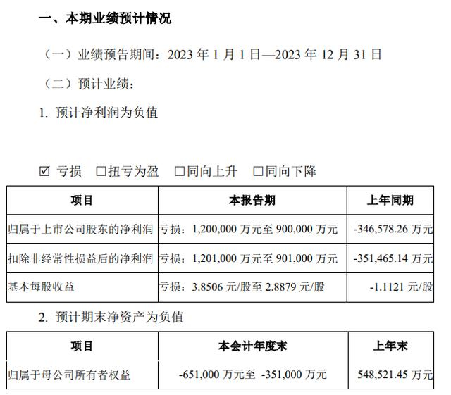 红星资本局2月2日消息,近日,合力泰(002217.SZ)发布2023年度业绩预告,预计2023年归母净利润亏损90亿至120亿元。如果上述亏损最终实现,将导致合力泰净资产为负。