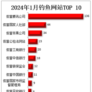 被投诉最多的是假冒腾讯公司的钓鱼诈骗网站,投诉量达136件次,比2023年12月份增加了97.1%。投诉排名第二的是假冒国家人社部的钓鱼诈骗网站,比2023年12月份增加了388.9%。