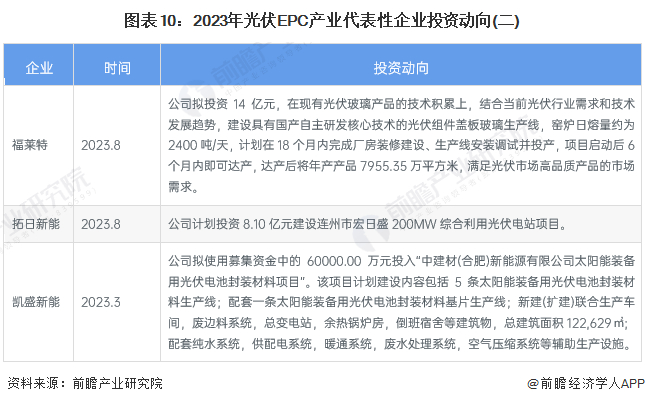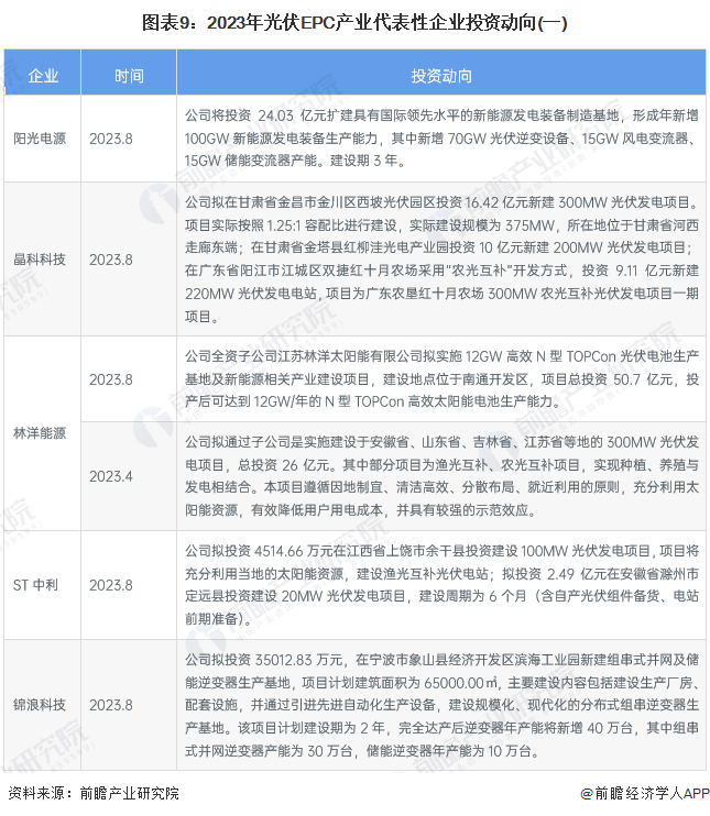 2023年以来,从光伏EPC代表性企业的具体投资事件来看,在光伏EPC显示屏领域的项目投资主要以扩产项目为主,除此之外,部分厂商亦投资了“光伏+”产业相关项目,进行光伏资源综合利用上的业务探索。光伏EPC产业链代表性企业最新投资动向如下: