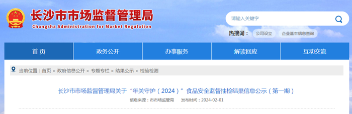 长沙市市场监督管理局关于“年关守护(2024)”食品安全监督抽检结果信息公示(第一期)