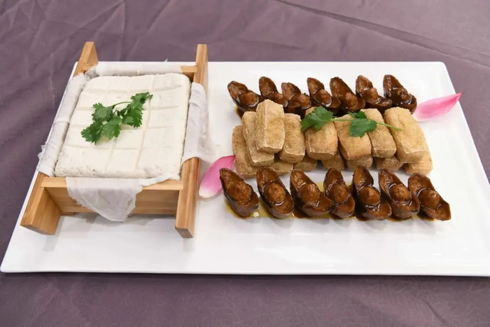 前童有“三宝”——老豆腐、香干、空心豆腐。老豆腐色泽洁白如玉、口感细腻绵滑;香干入口既香又甜,嚼劲十足;空心豆腐脆而不碎,让人久吃不厌。