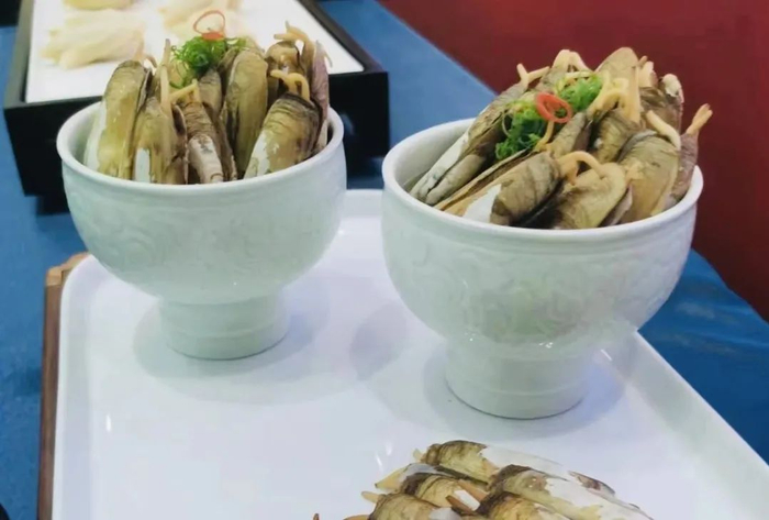 双味长街蛏子包含了“雪汁蛏子”和“盐烤蛏子”两种口味,前者煮出的蛏子像豆腐一样柔嫩,一口吞下;后者不似水煮般的肥嫩口感,但特别有嚼劲,且香气十足。