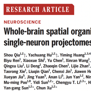2月2日,《科学》期刊在线发表了题为《Whole-brain spatial organization of hippocampal single-neuron projectomes》的研究论文。该研究解析了海马神经元的空间联接规律,并建立了小鼠海马脑区单神经元的全脑介观投射联接图谱的数据库。