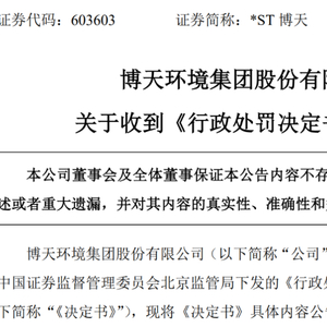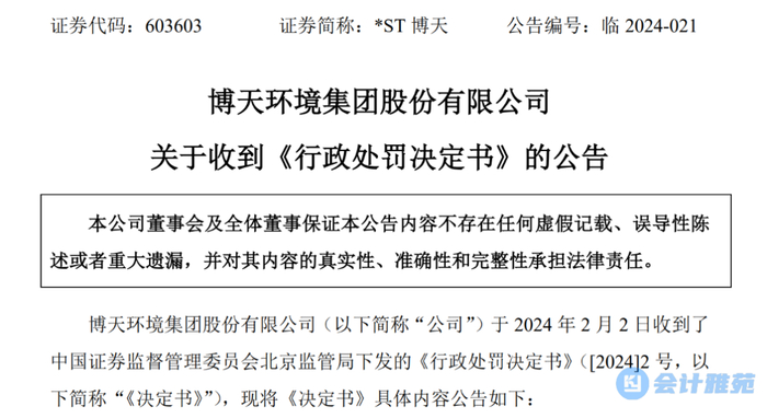 此外,2023年3月31日,博天环境披露《关于前期会计差错更正及追溯调整的公告》,主动更正相关年度案涉虚假记载金额等会计差错,对2017年度至2021年度合并财务报表和母公司财务报表进行追溯调整,涉及对各年度主要财务指标和合并资产负债表的影响,自认更正如下会计差错:2017年,多记应收账款72,056,841.99元,多记在建工程278,613,919.45元,多记应付账款225,588,994.04元;2018年,多记应收账款392,962,647.60元,多记在建工程1,058,923,120.64元,多记应付账款790,017,083.10元;2019年,多记应收账款6,592,819.33元,多记在建工程881,388,595.13元,多记应付账款349,989,292.35元;2020年,少记应收账款3,819,450.01元,多记在建工程822,391,385.38元,多记应付账款351,020,608.35元;2021年,多记应收账款419,294,145.87元,多记应付账款358,269,670.33元。