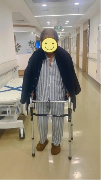 由于充分的术前准备工作,术中配合良好,手术创伤及出血非常小。在骨科护理及康复团队快速康复规范化流程的指导下,患者至出院前已经能下床站立及行走,髋关节活动功能明显改善,对于手术效果非常满意。