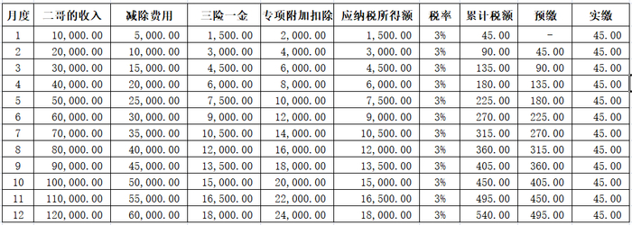 这个时候你说怎么选?当然是并入一起算嘛,不能白白浪费了综合所得的扣除项。