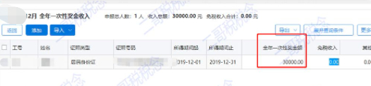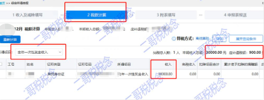 同样是12月发了3万,这个时候和12月发放的工资加总,按照累计预扣法计算,在这里实质上就是和把这3万当成工资薪金一起计算。