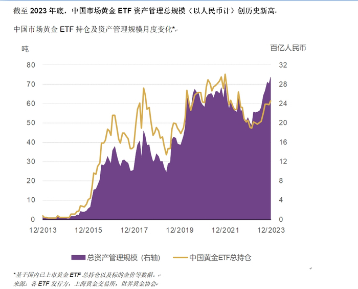 2023年底,中国市场黄金ETF总持仓达到61.5吨,全年净流入约合50亿元。