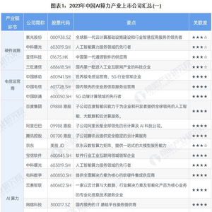 目前AI算力行业上游代表性上市企业主要有:紫光股份(000938.SZ);中科曙光(603019.SH);亚信科技(01675.HK);三旺通信(688618.SH)等。