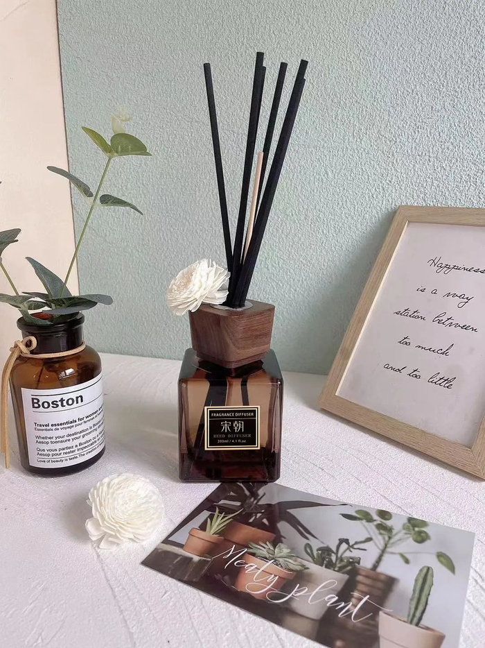 咖啡色的瓶身,简洁的方型设计,玻璃材质,手感圆润光滑,光感优雅柔和,一瓶香薰就能让人沉浸在如同酒店般氛围中!