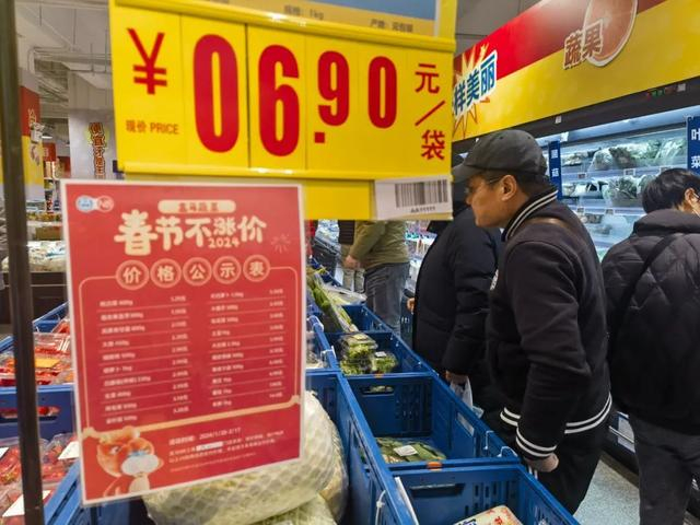 “蔬菜春节不涨价”这一举措得到了广大消费者的热烈欢迎。在盒马奥莱八一路店,记者看到不少市民驻足价格公示表前,认真察看。“承诺春节不涨价,并将蔬菜价格公示出来,这样的惠民举措挺好的。”一位市民边选购蔬菜边说道。
