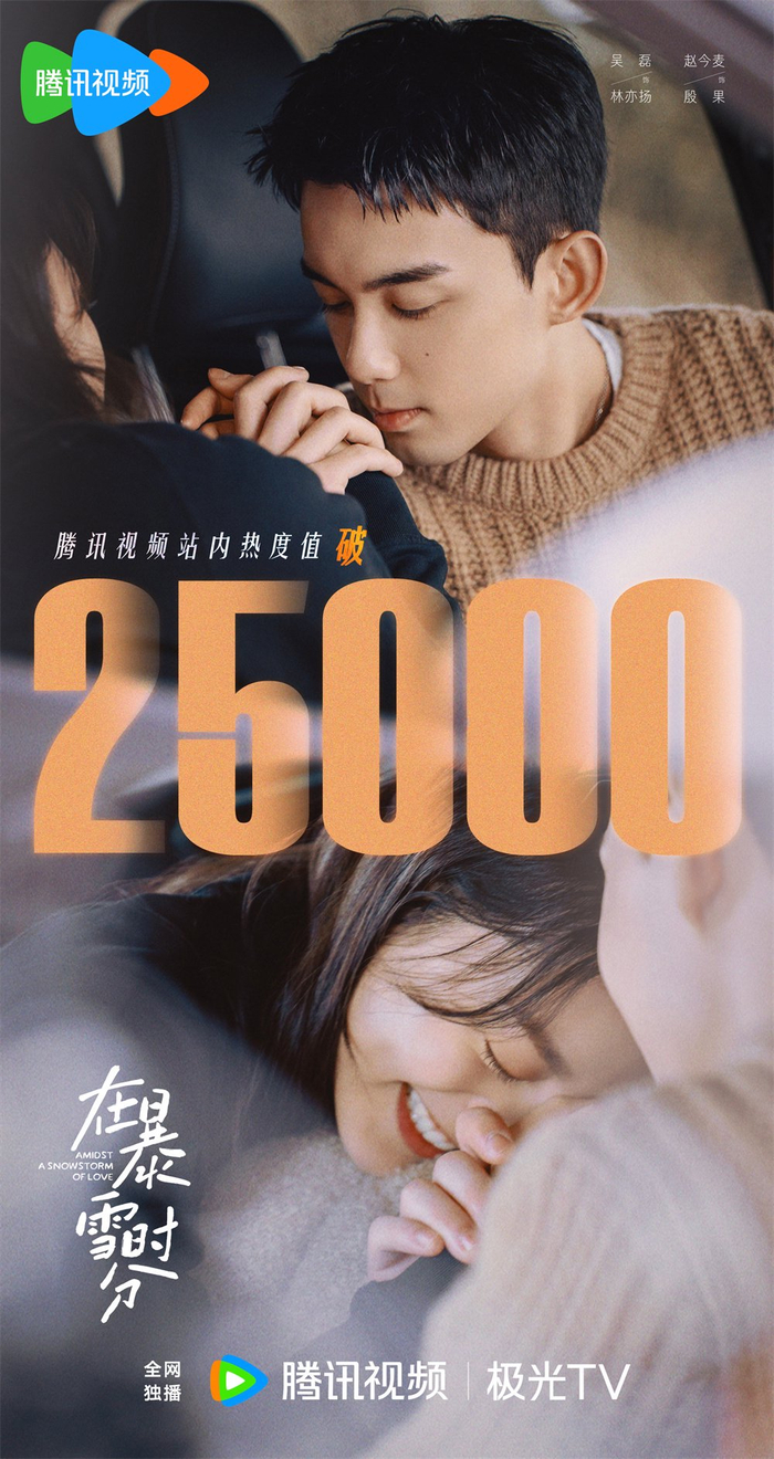 播出首日,《在暴雪时分》在腾讯视频站内热度值破25000。