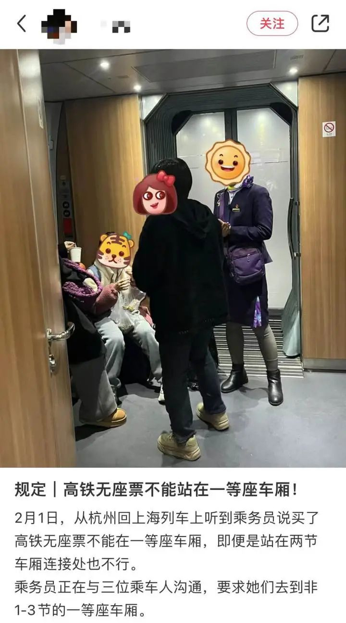 买“无座票”站在一等车厢连接处被劝离?12306回应