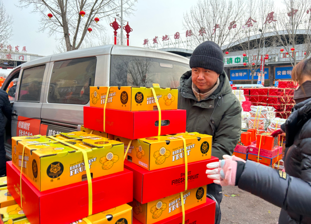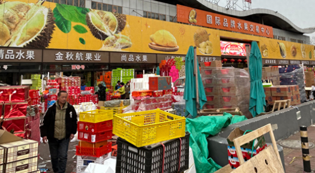 报关公司连轴转,批发市场也一派忙碌景象。2月2日下午2点,新发地三农门附近的国际品牌水果交易中心出入口已被堵得水泄不通,档口的摊主们正忙着将一箱箱水果装卸到停靠的来往车辆上。