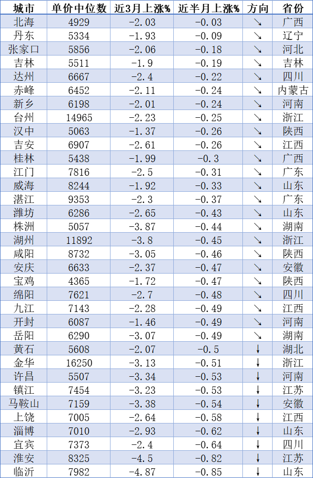 各城市回调方向一致,区别只在于,下调速度快和慢。经济、产业、工业实力强,下调慢一些,其余下调快一些。