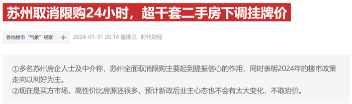 1月31日,苏州出招:不再对购房资格进行审查,也不再限面积和套数。