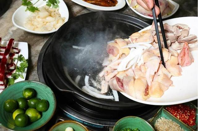 吹海风,吃榕树籽,啄椰子肉,经过长期的人工选育和生态放养,海南文昌鸡肉质Q弹,香甜爽滑。以椰肉椰汁为汤底,滚沸后加入斩块文昌鸡,最后淋上简单的油醋调料和青橘酸汁,一道著名的海南椰子鸡火锅,绝对是你过年“称霸”厨房的最佳方案。