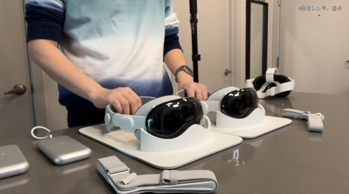 这里就要提到 Vision Pro 的交互方式了,以往提到 VR 之类的头显设备,大家都会跟着想到手里的两个手柄,比如 Quest 3 等等。