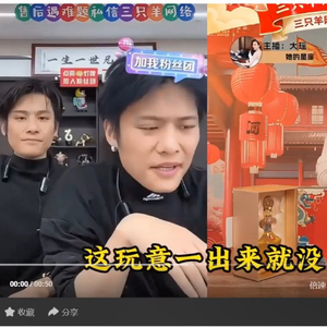 事实上,类似情况并不少见,百度推流广告直播间,小杨哥团队带货主播介绍,另一款“五粮液总厂的龙年生肖纪念酒”,宜宾市闽(字幕错别字,应为“岷”)江西路150号,总厂的52度、浓香型、纯粮酒(小麦、大米、糯米、玉米、高粱、竹荪、绿豆、葛根)八种原料混合酿造。某电商平台卖1299元,直播间两瓶(500ml/瓶)加赠一套八代普五的酒具,到手238元。