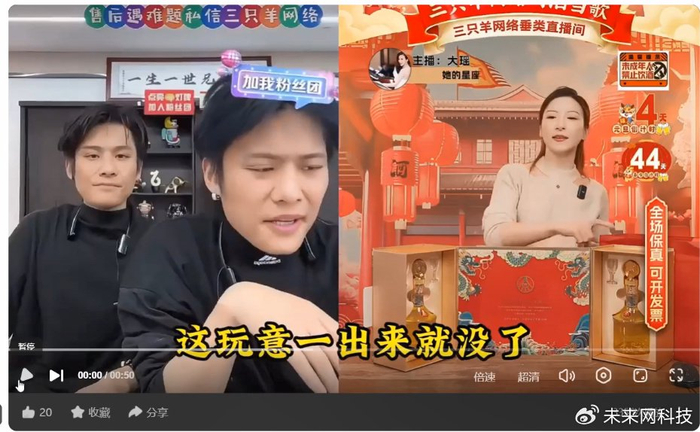 “五粮液国杯龙年限定礼盒外面售价1199元,今天直播间只需要228元”,百度推流广告小杨哥直播间,主播声嘶力竭的叫卖引起了不少网友的围观。其中就有网友发出了质疑,“这是宜宾五粮液股份有限公司的酒吗”“五粮液酒这么便宜了吗”?针对网友们的疑问,记者展开了调查。