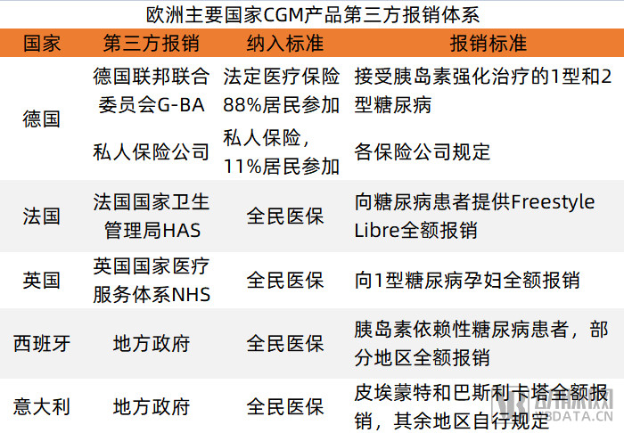 从医保角度看,欧洲多个国家已将CGM纳入报销体系。如英国和法国对符合条件的患者予以全额报销,由国家医疗保障体系买单;德国对满足报销条件的患者给予部分报销或全额报销,由私人保险公司买单。完善的保障体系减轻了患者的个人经济负担,使其更有动力购买、使用CGM。