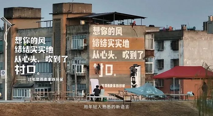 燕麦奶OATLY甚至没有利用“龙”元素,主打过年回家的亲情牌,再一次玩起了墙体广告:在家不习惯,多半是忘了把习惯带回家;爸喝过黄的白的和红的,还真没喝过带铁的;citywalk一百遍,也找不到咱家这样的后院…