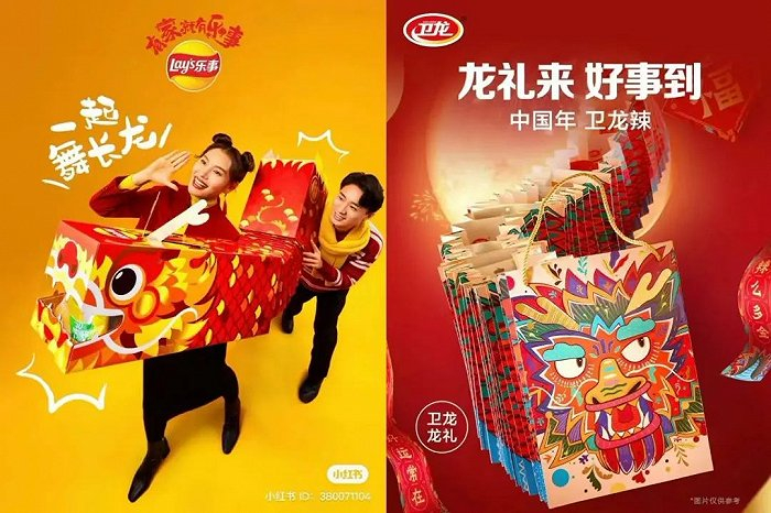 龙年是12生肖中热度最高的,对于龙这个全民级别的意象,众多品牌的年味营销比往年来得更猛烈一些,大家都在竭尽所能与“龙”绑定。