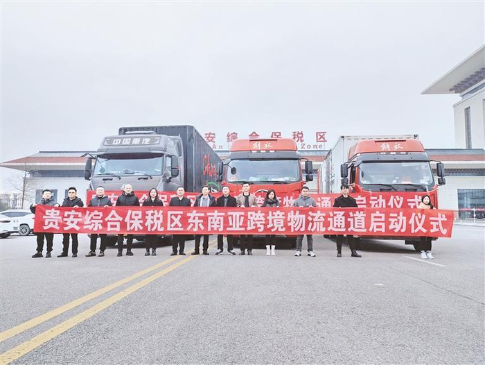 ↑2023年12月28日,贵安综合保税区东南亚跨境物流通道开通。