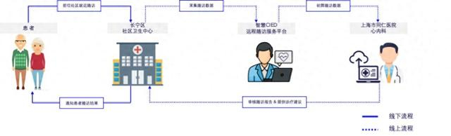 社区医院接待患者,使用随访设备进行监测和数据上传;上海市同仁医院心内科医生远程查看监测报告,反馈诊疗意见,并为需要进一步诊疗的患者提供转诊;美敦力工程师在后台进行技术支持,如此形成整个服务流程闭环。