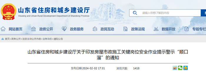 为进一步强化施工现场安全风险管控,切实提升一线作业人员安全意识和技能,坚决防范遏制各类事故发生,省住房城乡建设厅组织编制了《房屋市政施工关键岗位安全作业提示警示“顺口溜”》(以下简称“顺口溜”),现印发给你们,请结合实际认真抓好贯彻落实。