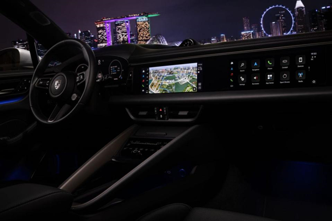 此外,纯电Macan致敬了新能源同行们“一车多屏”的作风。车内最多可搭载3块屏幕,包括悬浮式12.6英寸曲面组合仪表和10.9英寸中央显示屏,以及需要选装的副驾驶10.9英寸的乘客显示屏。主驾位还首次配备采用AR技术的抬头显示系统,图像焦点位于在驾驶员前方10米处显示,显示大小相当于87英寸的显示屏。