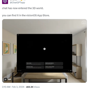 ChatGPT已正式登陆苹果Vision Pro。来源:X平台