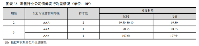 附录三:零售行业公开市场发债企业2023年前三季度发行债券利差