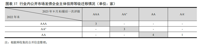 附录一:2023年9月末行业内存续公开市场发债主体信用等级分布及主要经营与财务数据(2023年9月末/2023年前三季度,合并口径)