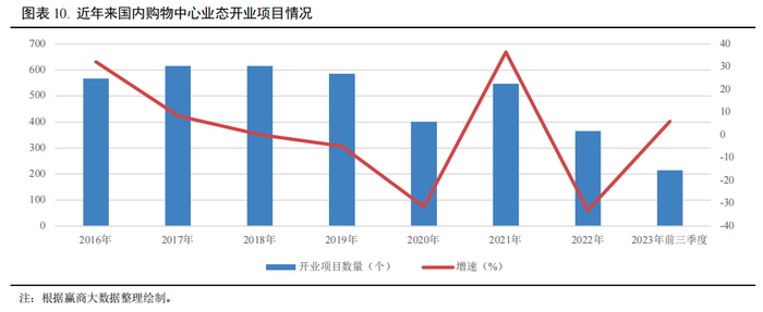 [2] ①统计范围为全国368个城市(不含港澳台)管辖行政区内,商业建筑面积3万平方米及以上的购物中心;②统计数据包含新增开业项目及存量改造开业项目。