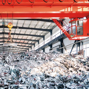 吉林省长春市一汽综合利用公司的厂区内,电磁起重机正在搬运报废钢材,