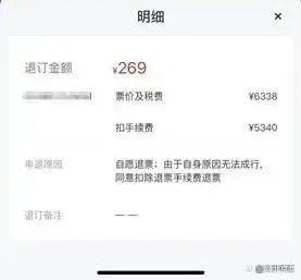 付款后龚先生在核对信息时发现买错了日期。于是,他立即在App上选择“退订”,没想到手机画面上显示的退款金额,却让他惊掉了下巴:269元!
