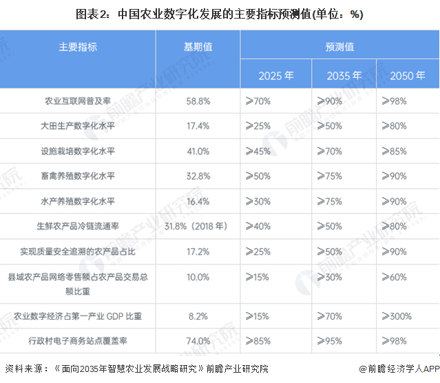 本文核心数据:中国农业数字化发展的主要指标预测值