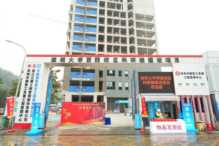 深圳新闻网2024年2月5日讯(记者 何亚南)近日,深圳大学西丽校区科研楼建设项目(西丽校区已更名为丽湖校区)主体结构封顶仪式顺利举行。深圳大学副校长李永华,深圳市建筑工务署工程管理中心副主任陈武谨,深圳大学、深圳市建筑工务署、全咨单位、设计单位、施工总承包单位的相关领导、负责人和工友代表参加封顶仪式。华南建设党委书记、总经理杨博瑞主持仪式。