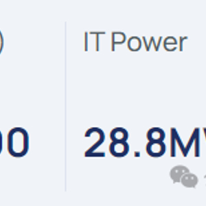 该数据中心机架容量5000,IT Power28.8兆瓦,能量使用效率1.4。