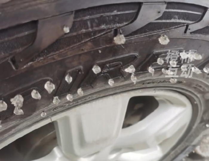 有网友在路边看到一辆车的轮胎疯转,却只往前行进了一点,仿佛在为冰面抛光。