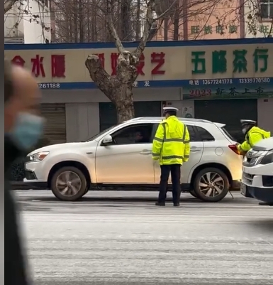 一些交警直接全天驻守在冰面难以融化的路段,协助推车、引导车辆。