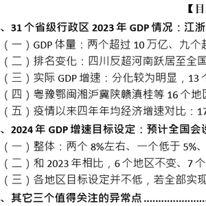本文聚焦31个省级行政区的2023年GDP规模、增速以及2024年增速目标。