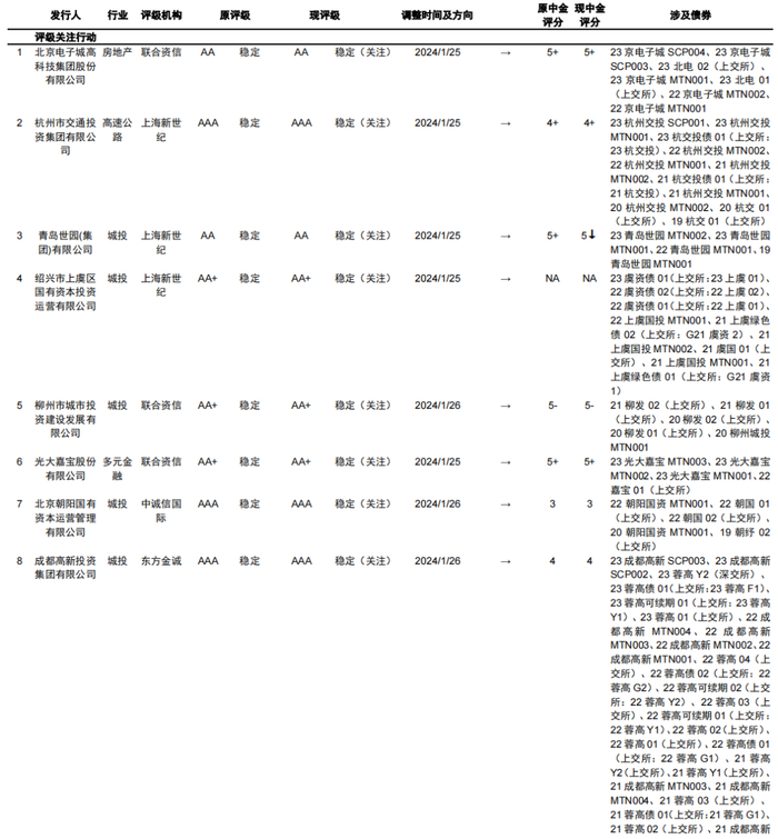 本文摘自:2024年2月5日已经发布的《中国信用债评级调整周报》